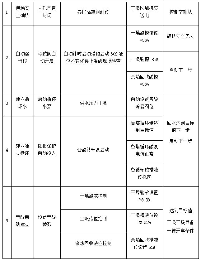 提示:本公眾號展示了部分硫酸裝置的一鍵開車實施技術。由于每套硫酸裝置的工藝流程各不相同,因此無法提供標準版的一鍵開車技術方案。如需實施硫酸裝置的一鍵開車,請與我們聯系。我們將根據貴方裝置的工藝特點,定制專屬的一鍵開車實施技術方案,并全程協助貴方成功實施一鍵開車。