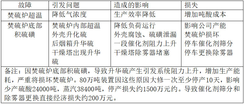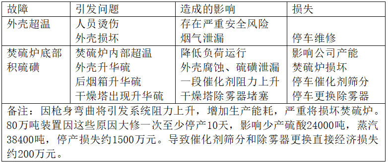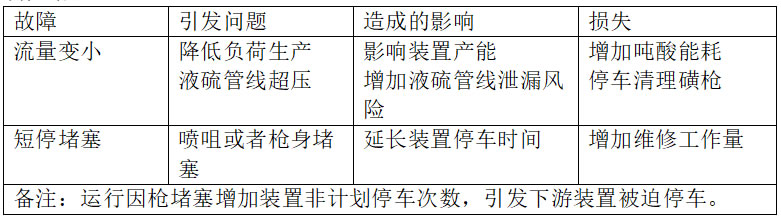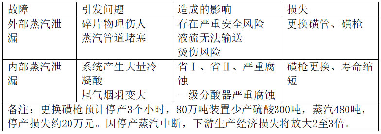 下面是磺槍故障引發對裝置長周期運行的影響分析。