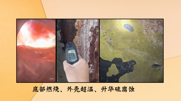 我答:磺槍霧化不好,使硫磺聚集到焚硫爐底部生成的液體硫磺,在風的作用下被吹到爐尾,液體硫磺受高溫烘烤變成升華硫,由于爐尾氧氣含量較低約為10%,就會出現燃燒后移和燃燒緩慢,沒有燃燒的升華硫被附著在火管上和后煙氣箱,還有一部分通過高溫鐘罩閥直接到達一段進口管上變成硫磺,而這些位置是含鐵的金屬材料,硫和鐵在加熱后生成硫化鐵,硫化鐵與氧氣反應生成三氧化二鐵。因此每次檢修都能在轉化器一段催化劑層發現大量黑色塊狀,這就是三氧化二鐵。