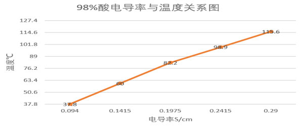 在硫酸工藝中,每一道工序的溫度把控都是極其嚴格的。鍋爐、換熱器、省煤器和過熱器等充當溫度調節的角色,特此引入關聯著以上設備的余熱回收概念。如若余熱回收的局部設備換熱性能下降,由局部到整體,導致過程溫度相應的升高或下降,進而影響硫酸的電解程度,又硫酸的電解程度會隨著溫度的升高而增加,即電導率隨溫度的上升而上升,見圖3.1。