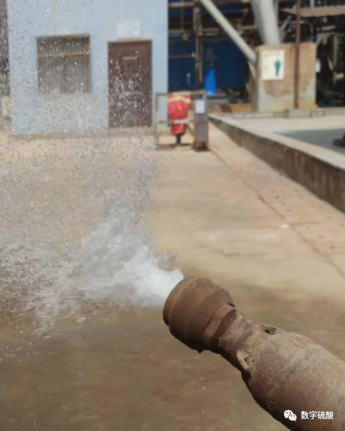 投用后的半年時間里,在裝置臨時停車期間,未出現噴咀前端法蘭密封面泄漏的情況。高效硫黃噴槍能有效適應裝置負荷在60%~110%,并且在該負荷范圍內焚硫爐底部沒有液體硫黃燃燒(見上右圖1)。解決了因冷熱交替出現蒸汽夾套泄漏,在運行過程中沒有出現霧化流量減小和焚硫爐下部出現硫黃鐘乳的情況。高效硫黃噴槍的工作流量范圍更大,最大流量增加了0.49 t/h,最小流量則降低了1.36 t/h;工作壓力降低了約0.3 MPa;霧化距離縮短了約1 m;焚硫爐內部的運行溫度降低了160 ℃,表面溫度降低了72~90度,保證焚硫爐在安全溫度下運行;高效硫黃噴槍的應用優化了液體硫黃的霧化效果(見上右圖3),提高了硫黃制酸裝置的最高負荷和硫酸產能,每天可增加硫酸產量120 t。高效硫黃噴槍投用近半年的時間,硫酸產能增加了16 500 t,多產蒸汽23 100 t,為企業創造營收2 100萬元,經濟效益顯著。由于硫黃噴槍運行壓力的降低和制酸煙氣中φ(SO2)的提高,噸酸電耗可節約2.8 kWh/t,起到了節能降耗的作用。