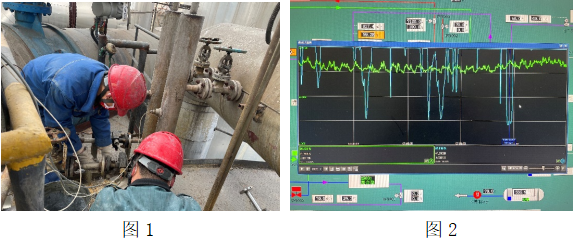 該客戶為四川某大型磷化企業(yè),有兩套400Kt/a硫黃制酸裝置,一級(jí)吸收均采用的余熱回收系統(tǒng)。在稀釋器出口,選用了兩套羅斯蒙特電導(dǎo)率傳感器和56E變送器,組合測(cè)量硫酸濃度。由于測(cè)量的一級(jí)循環(huán)硫酸是稀釋后的硫酸(溫度180℃、壓力0.1MPa),為了實(shí)現(xiàn)快速將水與硫酸混合均勻,該稀釋器采用壓縮空氣霧化脫鹽水增強(qiáng)擾動(dòng)的技術(shù)。導(dǎo)致電導(dǎo)率傳感器測(cè)量含有空氣介質(zhì)的硫酸,使得余熱回收系統(tǒng)從投用到改造前所的一級(jí)循環(huán)酸濃度測(cè)量值與實(shí)際偏離大,且測(cè)量數(shù)據(jù)波動(dòng)大(見圖2).因此測(cè)量的結(jié)果無法用于保障裝置安全聯(lián)鎖和加水自動(dòng)控制的要求。